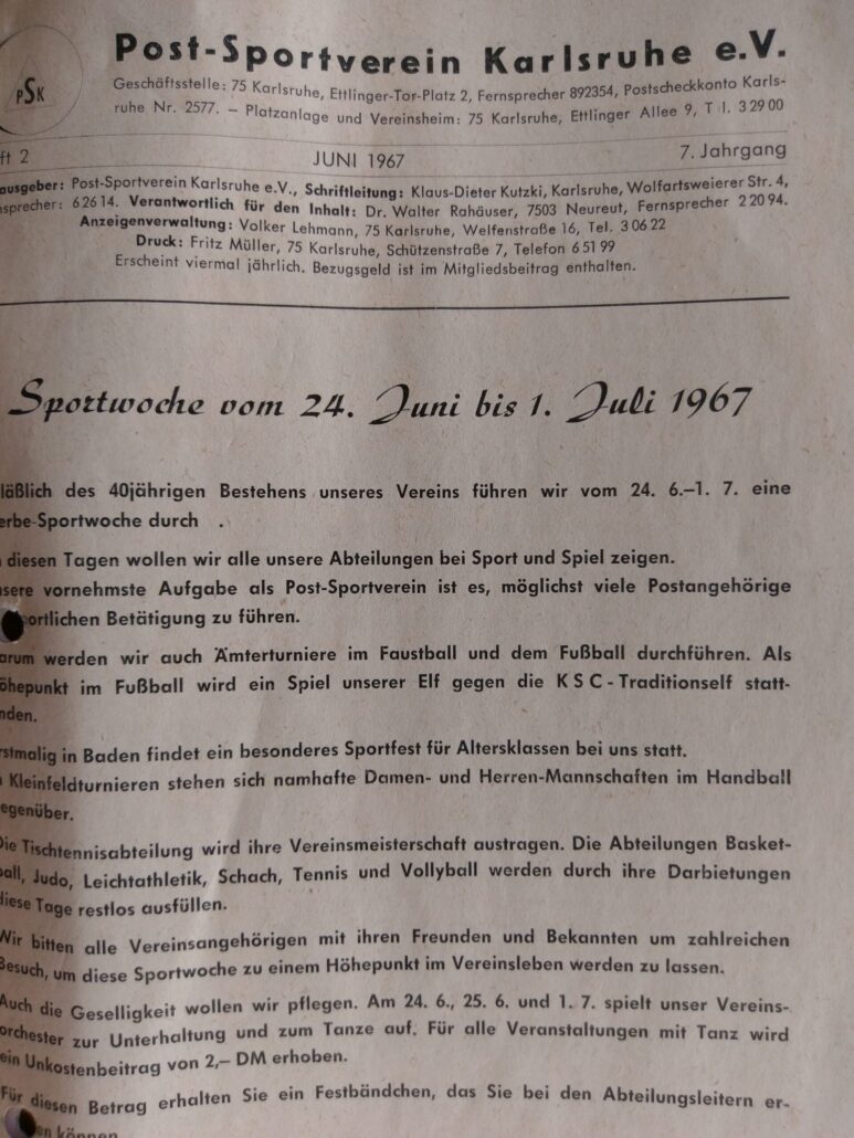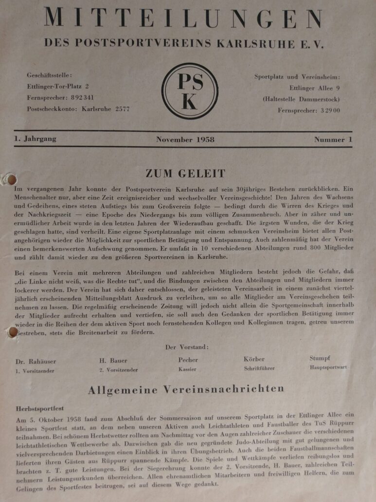 1958 erschien die erste Ausgabe der Vereinsnachrichten, der PSK-Kurier, der bis heute vierteljährlich erscheint und das Vereins- und Abteilungsgeschehen widerspiegelt.