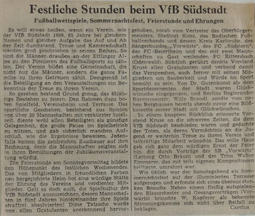 1967 wurde das 40jährige Vereinsjubiläum mit einer großen Festveranstaltung in der Stadthalle gefeiert.